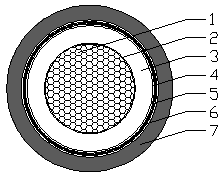 1—軟鋁型線導(dǎo)體;2—導(dǎo)體繞包層;3—絕緣層;4—絕緣繞包層;5—編織屏蔽層;6—屏蔽繞包層;7—護(hù)套層